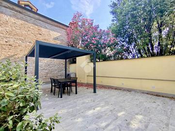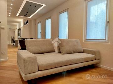PADOVA - SANTO Elegante trilocale termoautonomo completamente ristrutturato, con terrazza abitabile e ascensore al piano. L'ingresso dell'abitazione conduce direttamente alla luminosa zona living, composta da una cucina a vista, un primo servizio adibito a lavanderia, e un pratico soggiorno dotato di accesso a un terrazzo. Da qui si raggiunge la terrazza abitabile piantumata, con impianto di irrigazione automatizzato, impreziosita da una comoda pompeiana ideale per momenti di relax o convivialità all'aperto. Un disimpegno introduce alla zona notte, dove si trovano una camera singola, una camera matrimoniale con accesso diretto alla terrazza abitabile, e un secondo bagno finestrato. L'immobile si trova al primo piano di un elegante contesto residenziale di poche unità, a pochi passi dalla Basilica del Santo. Oggetto di una completa ristrutturazione che ha interessato l'intero stabile, l'appartamento vanta un'eccellente classe energetica. Tra le dotazioni di pregio: infissi in PVC con triplo vetrocamera e tapparelle motorizzate, riscaldamento a pavimento e impianto di climatizzazione a pompa di calore. Le finiture di alto livello e l'arredo ricercato conferiscono all'immobile un'elevata qualità abitativa, offrendo il massimo di comfort. Canone di locazione 4+4: * € 2.850,00/mese * Con posto auto: € 3.000,00/mese * Posto auto aggiuntivo: € 250,00/mese * Solo posto auto (senza appartamento): € 300,00/mese
