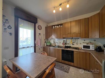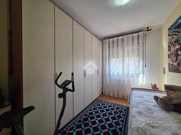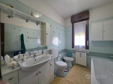 PADOVA - CAMIN - In zona residenziale, molto verde ma allo stesso tempo comoda ai servizi. In palazzina di 8 unità al secondo piano servito da ascensore. Ingresso separato dal soggiorno e dalla cucina entrambi serviti dal poggiolo. Nel reparto notte abbiamo due bagni finestrati, uno con doccia e uno con vasca, una camera matrimoniale con poggiolo, una camera doppia e il ripostiglio. Al piano terra il garage. La palazzina si trova in buone condizioni in quanto è stata recentemente tinteggiata.