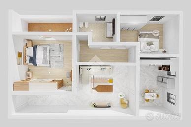 PALAZZO PIGNANO: Al primo piano di bella palazzina del 1996, comodamente servita da ascensore, ottimo appartamento di 90mq. Composto da ingresso, spazioso soggiorno, comoda cucina abitabile, disimpegno notte, due camere da letto e bagno con vasca. Completo di balcone, cantina e box. In buono stato di manutenzione, dotato di aria condizionata. Spese condominiali € 1200 all'anno.