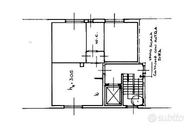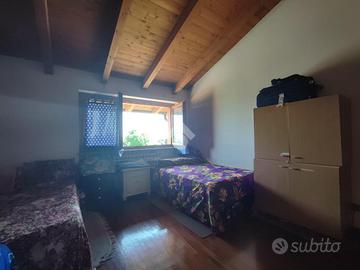 Trilocale mansardato con le travi in legno a vista all'ultimo piano di un condominio servito dall'ascensore.