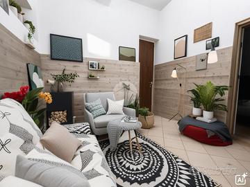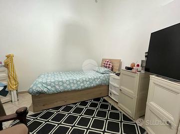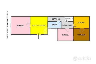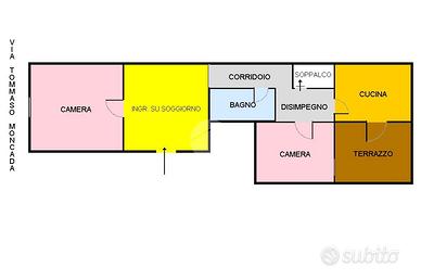 L'ingresso si apre su un luminoso soggiorno, da cui si accede alla camera da letto, con finestra che affaccia su Via Tommaso Moncada. L'immobile dispone anche di una cameretta, un bagno con box doccia e un disimpegno con scala che conduce a un soppalco, ideale come angolo studio o spazio aggiuntivo. La cucina semi-abitabile ha accesso diretto a un terrazzo interno, perfetto per godere di un angolo di tranquillità.