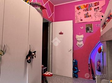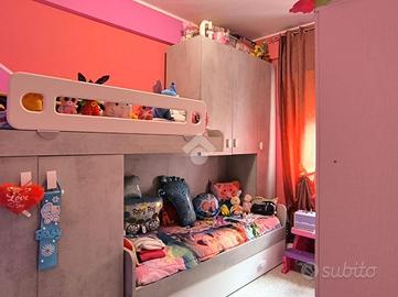 L'immobile è composto da salone con balcone che espone su retro prospetto, una cucina anch'essa con balcone verandato, una camera da letto matrimoniale, una cameretta e un bagno con doccia.