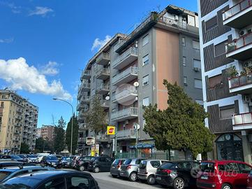 L'appartamento, con una superficie commerciale di 106 mq, è posto al sesto ed ultimo piano di uno stabile anni '60 in buone condizioni, dotato di ascensore e servizio di videosorveglianza che garantiscono un contesto sicuro e tranquillo. Le spese condominiali ammontano a soli 80 euro mensili.