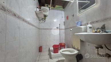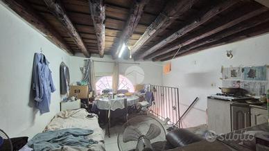 L'immobile si presenta su due livelli, con accesso separato, ed è composto da: un piano terra, con ingresso da saracinesca, che consta di un unico grande ambiente principale e di due piccoli vani laterali per una superficie complessiva di 70 mq commerciali; e da un piano ammezzato (ricavato in un secondo momento, sfruttando l'altezza dei soffitti del piano terra) con una propria porta di ingresso su strada, accanto alla saracinesca di cui prima, formato da scala interna in ferro, cucina-soggiorno, camera e servizio igienico.