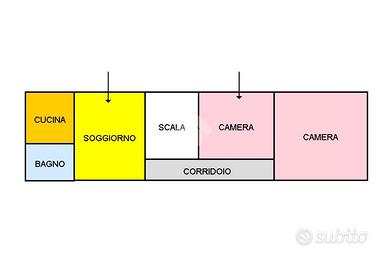 L'immobile ha una superficie di 80 mq c.a. composta da soggiorno, due camere, cucina e bagno.