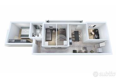 (IN TRATTATIVA) Nuova funzionalità : L'immobile è proposto con l'utilizzo di rendering progettuali cosi da offrire una diversa visione del suo potenziale dopo una eventuale ristrutturazione. La planimetria 3D consente di capire meglio la distribuzione degli ambienti. Via Giuseppe Pagano, zona Calatafimi Bassa- Villa Tasca , posto al nono piano con ascensore. Luminoso immobile con ingresso su cucina soggiorno di 27 mq collegata ad un comodo studio. Proseguendo dal disimpegno troviamo la zona notte con una camera matrimoniale, due camerette e wc doccia. L'immobile è caratterizzato dalla presenza di due balconi di cui uno di circa 11 mq. La pavimentazione è in segato di marmo, infissi in alluminio vetro camera, porte in legno, dotato di riscaldamento autonomo con caldaia a metano. Il prospetto dello stabile è stato ristrutturato nel 2024, è presente il servizio di portineria e le spese condominiali sono di circa 80 euro mensili. La posizione strategica consente di raggiungere facilmente i principali servizi e le vie di comunicazione della città. Perfetto per chi desidera vivere in una zona tranquilla ma ben collegata. E' possibile visionare l'immobile previo appuntamento telefonico ai seguenti recapiti telefonicio: -