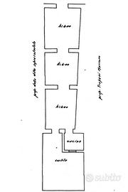 L'immobile si presenta in condizioni da ristrutturare, è composto da un soggiorno d'ingresso, due camere da letto, cucina abitabile, bagno con doccia e un pozzo luce che garantisce illuminazione e ricircolo d'aria agli ambienti interni. La distribuzione è funzionale e gli spazi, seppur contenuti, possono essere valorizzati con una ristrutturazione mirata.