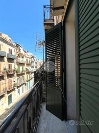 All'interno, l'appartamento si apre con un ingresso che dà direttamente sul soggiorno, creando un ambiente spazioso. A seguire ci sono due camere da letto, entrambe con balcone che affaccia su via Vito La Mantia e una comoda e pratica cucina abitabile. Completano l'immobile un servizio igienico e un ripostiglio, offrendo spazio e funzionalità.