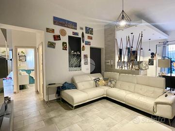 Due terrazzi completano la proprietà: uno di questi, situato all'ingresso, offre un piacevole spazio esterno dove rilassarsi, mentre l'altro, collegato alla cucina soggiorno, è ideale per godersi la tranquillità del quartiere all'aperto. Questo appartamento rappresenta una soluzione ideale per chi cerca una casa moderna, funzionale e ben posizionata, a pochi passi dai principali servizi.