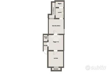 La proprietà comprende tre locali, un soggiorno ed una sala da pranzo ben collegati agli altri ambienti, presenta un balcone che rende gli ambienti luminosi, la cucina semi abitabile e il bagno finestrato con doccia si presentano recentamente ristrutturati, mentre la camera da letto con uscita su un balcone la cui esposizione è sulla via principale.