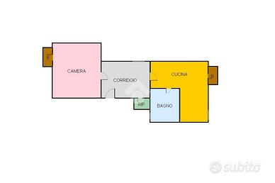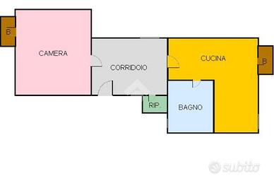 L'appartamento si compone di un ampio ingresso che disimpegna la camera da letto matrimoniale con balcone, la cucina abitabile con annessi wc-doccia e balcone verandato ed un piccolo ripostiglio.
