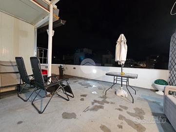 Al secondo piano abbiamo un ingresso su un'ampia cucina-soggiorno con balcone prospiciente su strada, una camera da letto matrimoniale con balcone, un bagno finestrato dotato di box doccia ed un ripostiglio. Salendo al piano superiore troviamo una seconda cucina, un angolo lavanderia/wc ed il terrazzo di pertinenza di circa 30 mq, ideale per i vostri momenti di relax.