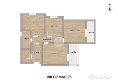 L'appartamento è composto da una camera da letto matrimoniale con balcone, molto luminosa e ariosa, e da una seconda camera che può essere utilizzata come stanza singola, studio o spazio aggiuntivo a seconda delle esigenze. La cucina abitabile con soggiorno rappresenta il cuore della casa: un ambiente ampio e conviviale, che si apre su una veranda, ideale come spazio in più. Un ingresso e un comodo disimpegno collegano con armonia tutti gli ambienti, contribuendo alla sensazione di ordine e comfort che si percepisce entrando in casa.