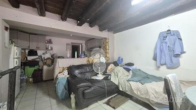 L'immobile si presenta su due livelli, con accesso separato, ed è composto da: un piano terra, con ingresso da saracinesca, che consta di un unico grande ambiente principale e di due piccoli vani laterali per una superficie complessiva di 70 mq commerciali; e da un piano ammezzato (ricavato in un secondo momento, sfruttando l'altezza dei soffitti del piano terra) con una propria porta di ingresso su strada, accanto alla saracinesca di cui prima, formato da scala interna in ferro, cucina-soggiorno, camera e servizio igienico.
