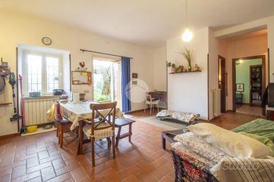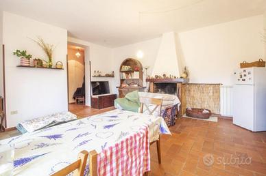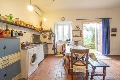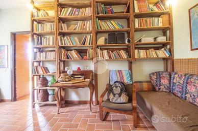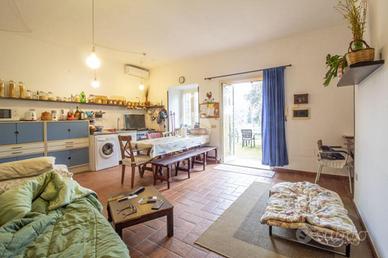 Tra le suggestive colline di Palombara Sabina, in Strada della Cascianella, proponiamo in vendita una graziosa soluzione semindipendente accatastata come magazzino, dotata di ingresso privato e situata a pochi chilometri dalla Strada Provinciale Pascolare. L'immobile, di circa 66 mq è disposto su un unico livello al piano seminterrato, si apre su una luminosa zona giorno open space con camino, perfetta per momenti di relax e convivialità, il pratico disimpegno conduce al bagno finestrato dotato di vascae alla zona notte, composta dalla camera matrimoniale e dallo studio, ideale come ambiente di lavoro o stanza per gli ospiti. Dalla camera da letto si accede a un'intercapedine di circa 45 mq, attualmente adibita a cantina e locale deposito, all'interno della quale è presente anche il serbatoio idrico. La proprietà è circondata su tre lati da un ampio terreno di circa 5.000 mq, curato e valorizzato dalla presenza di 32 piante di ulivo. Completa lo spazio esterno l' incantevole giardino frontale, arricchito da aiuole fiorite, due imponenti ulivi secolari e piante ornamentali di pregio. Realizzata nel 2002, la proprietà si distingue per l'attenta ottimizzazione degli spazi e per le scelte stilistiche che donano agli ambienti un'atmosfera calda, accogliente e dal gusto bohemien. L'utilizzo armonioso del legno e delle tonalità chiare, presenti in tutti gli ambienti, contribuisce a creare un contesto rilassante ed elegante. Dati tecnici e finiture: Il riscaldamento è autonomo, garantito da camino, impianto a GPL e sistema di climatizzazione. L'approvvigionamento idrico avviene tramite pozzo (profondità 100 m) ed è presente la fossa biologica. Gli infissi interni sono in alluminio con doppio vetro, mentre quelli esterni e il portone sono blindati. La pavimentazione è in cotto fiorentino. Il contesto è riservato e immerso nella natura incontaminata, ideale per chi desidera vivere nella tranquillità delle colline sabine senza rinunciare alla comodità dei collegamenti