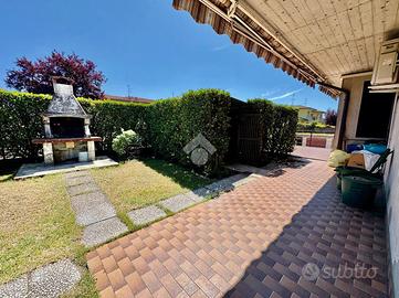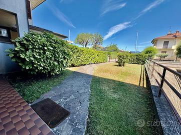Varcando la porta d'ingresso veniamo accolti da una luminosa zona giorno con cucina abitabile e soggiorno separato. La zona è circondata da vaste portefinestre che ci consentono di accedere al giardino.