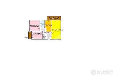 Al suo interno troviamo: ingresso-disimpegno, un ampio soggiorno luminoso con balcone, una cucina abitabile con balcone comunicante con il soggiorno, due camere da letto di cui una con accesso ad un balcone, un bagno finestrato con doccia ed un comodo ripostiglio.