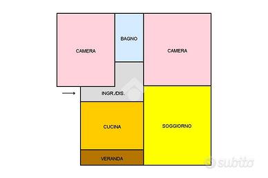 L'appartamento, di circa 90 mq è posto al piano terra/rialzato di una piccola palazzina ed è internamente composto da: