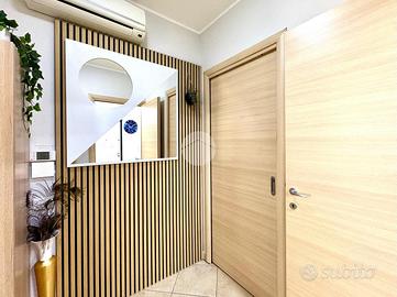 L'appartamento si distingue per gli spazi funzionali e la luminosità: zona giorno con soggiorno e cucina open space, due camere matrimoniali e bagno finestrato con doccia.