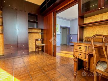 Dall'ingresso si accede alla zona giorno, composta da un ampio soggiorno che, grazie alla sua metratura offre la possibilità di essere arredato e disposto con particolare cura. Da qui si ha l'accesso all'ampio studio tramite elegante porta scorrevole, collegato anche con la seconda camera della soluzione.