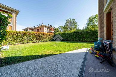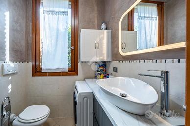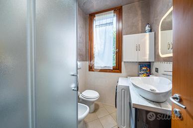 Completano l'immobile una comoda cantina e un giardino di circa 250 mq, gestito da impianto d'irrigazione con acqua proveniente da un pozzo condominiale che garantisce un notevole risparmio economico. Viene fornito anche di un robot tagliaerba dotato di sistema di delimitazione delle aree da tagliare impostabile anche da remoto.