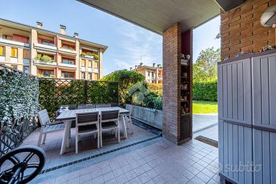 Luminoso appartamento di 77 mq, posto al piano terra di un edificio residenziale di recente costruzione.