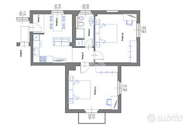 L'appartamento è disposto con ingresso su soggiorno con angolo cottura, due camere da letto, balcone e due bagni. Completano l'immobile una cantina e un'ampia porzione di sottotetto in proprietà. Lo stabile è stato oggetto di un completo restyling con tetto impermeabilizzato e tegole sostituite, cappotto termico, balconi in vetro. Approfitta delle detrazioni fiscali!