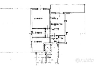 La disposizione interna comprende tre locali ben distribuiti: un soggiorno con angolo cottura accogliente, due camere da letto (di cui una matrimoniale ed una singola) e un bagno.