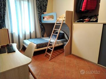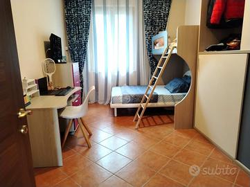 Proseguendo si trova la zona notte, composta da due camere da letto matrimoniali, un ripostiglio e un bagno completo di tutti i comfort.