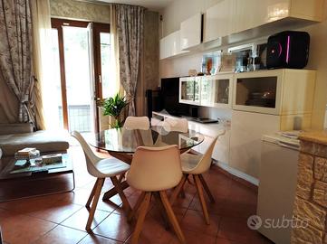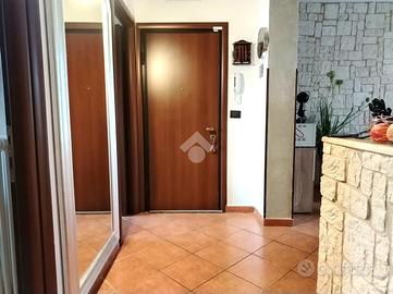 Dall'ingresso si nota il funzionale corridoio che collega tutti i comodi ambienti, la zona giorno è composta da un soggiorno perfettamente arredabile con accesso sul balcone, con affaccio sul verde che circonda la palazzina.