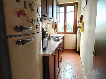 La cucina, separata dal soggiorno, completa la zona giorno.