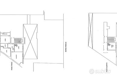 La disposizione interna comprende al terzo piano due camere, una cucina e un bagno, mentre al quarto piano si trova un'ulteriore camera raggingibile o dall'interno tramite una scala a chiocciola o dal vano condominiale tramite una porta, offrendo spazi ben distribuiti e funzionali.