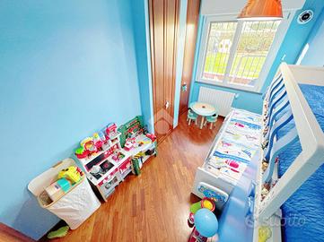 L'appartamento si distingue per il suo ampio giardino privato di 240 mq, un vero valore aggiunto che offre privacy, relax e la possibilità di vivere gli spazi esterni in ogni stagione.
