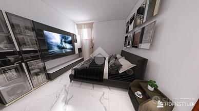 La spaziosa e luminosa area living con cucina a vista, si affaccia direttamente sul terrazzo, creando un ambiente accogliente e pratico. La zona notte si compone di due camere da letto e due bagni dal design contemporaneo, entrambi rifiniti con materiali di pregio.