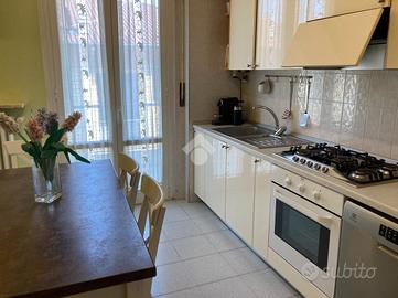 La cucina è molto spaziosa, abitabile e quadrata, comoda per i pasti di tutta la famiglia e l'accesso al balcone aumenta la comodità quotidiana.
