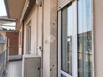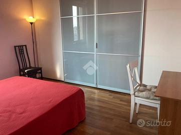 Le camere da letto sono entrambe matrimoniali, spaziose e quadrate, separate dal bagno al centro, e una delle due è accessoriata di un secondo balcone con vista aperta sulla città.