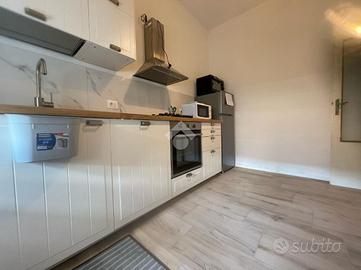 L'appartamento è composto da soggiorno, cucina, due camere da letto, balcone e bagno con finestra. La posizione all'ultimo piano garantisce ottima luminosità e privacy.