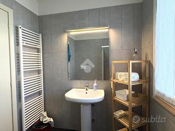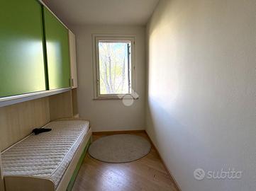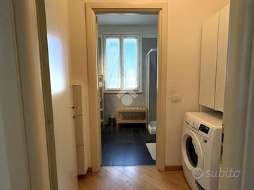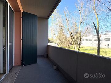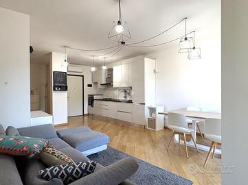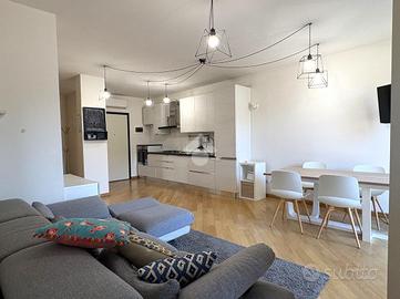 Ampio terrazzo privato, comfort moderno e affacci riservati nel verde All'interno di un recente e signorile complesso residenziale (2017), in posizione tranquilla e riservata ma perfettamente collegata al centro cittadino e a tutti i servizi, proponiamo in vendita elegante appartamento al primo piano. La soluzione si distingue fin da subito per la luminosa zona giorno con soggiorno e angolo cottura, valorizzata da un esclusivo terrazzo privato di 58 mq, vero punto di forza dell'immobile: uno spazio raro e vivibile, ideale per pranzi all'aperto, momenti di relax o convivialità. La zona notte, ben separata, offre massima privacy e tranquillità, grazie all'affaccio riservato su area verde. È composta da una camera matrimoniale con loggia privata, una seconda camera e un bagno completo, preceduto da pratico antibagno ad uso lavanderia. Elemento distintivo dell'abitazione è il riscaldamento a pavimento, che garantisce comfort uniforme, efficienza energetica e qualità abitativa superiore, affiancato da impianto di climatizzazione. Soluzione ideale per chi desidera un'abitazione moderna, funzionale e con importanti spazi esterni, senza rinunciare alla riservatezza e alla comodità ai servizi. Soluzione ideale per chi è alla ricerca di comfort abitativo in contesto recente e ben collegato.