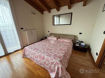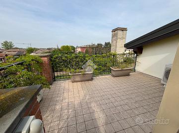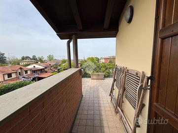 Elegante duplex recente con mansarda, terrazzi e garage - ottime finiture Alberi di Vigatto: in contesto residenziale tranquillo e ben curato, proponiamo in vendita raffinato appartamento disposto su due livelli (piano primo oltre rialzato + mansardato), realizzato nel 2003 e oggetto di interventi migliorativi nel tempo. L'ingresso si apre su una luminosa zona living open space con cucina a vista e penisola, un ambiente moderno e accogliente valorizzato da ampie aperture e accesso diretto ai primi due terrazzini, ideali per vivere appieno gli spazi esterni. Al piano principale troviamo un primo bagno finestrato con box doccia. Tramite scala interna si accede al piano mansardato, qui si trova la camera matrimoniale con accesso diretto ad un godibile e spazioso terrazzo e un altro ambiente versatile perfetto come seconda camera, studio o zona relax, oltre al secondo servizio con vasca idromassaggio e un altro funzionale sfogo esterno. L'immobile si distingue inoltre per le dotazioni tecniche e gli interventi eseguiti, tra cui: Riscaldamento autonomo con caldaia sostituita nel 2009 Impianto di climatizzazione (interventi recenti 2025) Cappotto/isolamento interno con contropareti in cartongesso e lana di roccia, per un miglior comfort termo-acustico Interventi di insonorizzazione acustica Tenda/chiusura perimetrale del terrazzo superiore con struttura volumetrica Porta blindata Completano la proprietà uno spazioso garage al piano interrato (26 mq) e finiture curate, tra cui pavimenti in legno che rendono gli ambienti caldi ed eleganti. L'appartamento è in ottime condizioni e pronto da abitare; si valuta inoltre la possibilità di lasciare parte dell'arredo.