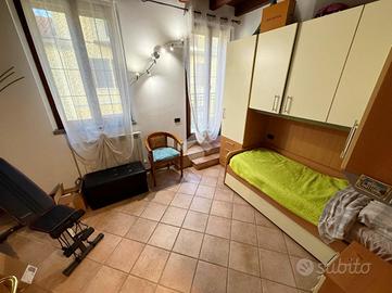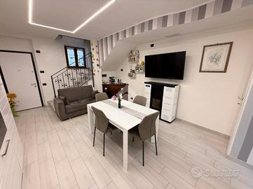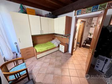 Piano terreno, ingresso in zona living composta da soggiorno e cucina open space oltre accesso al giardino e servizio finestrato dotato di doccia. Al piano primo (raggiungibile tramite scala in muratura), la zona notte è composta da: camera singola e servizio finestrato. Il piano secondo (zona sottotetto) raggiungibile tramite scala in muratura, dedicato totalmente ad uso camera matrimoniale.