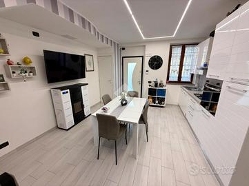 Inoltre l'unità è stata dotata di: giardino privato, due porte blindata, riscaldamento autonomo, stufa a pellet, aria condizionata con pompa di calore, infissi in legno (doppio vetro con camera d'aria), persiane, zanzariere, inferriate, citofono video e ottima esposizione.