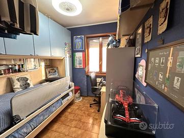 * Ingresso in soggiorno con accesso al balcone, cucina abitabile, disimpegno, camera matrimoniale e servizio padronale (finestrato e dotato di vasca), camera singola.L'immobile si presenta in buone condizioni.
