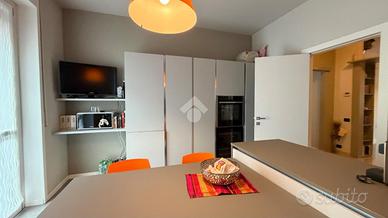 TRILOCALE IN VENDITA All'interno del rinomato Residenziale Giardino, in stabile signorile dotato di servizio di portineria e ascensore, proponiamo in vendita un elegante trilocale posto al terzo piano. L'appartamento si caratterizza per gli ambienti spaziosi e luminosi: l'ingresso conduce a un ampio soggiorno e a una cucina abitabile separata, funzionale e ben organizzata. La zona notte comprende due camere da letto di generose dimensioni con pavimento in parquet. Il bagno ospita la vasca e ed è finemente rifinito. L'immobile viene venduto completamente arredato, con arredi moderni e di qualità. A completare la proprietà troviamo una cantina e un box auto, che garantiscono ulteriore comodità e valore aggiunto. Situato in un contesto residenziale tranquillo, curato e ben servito, questo appartamento rappresenta la soluzione ideale per chi cerca comfort, eleganza e praticità in una delle zone più richieste.
