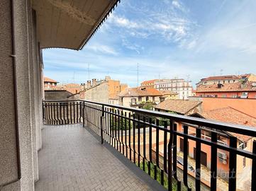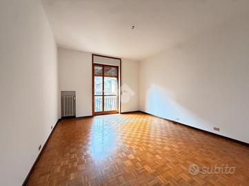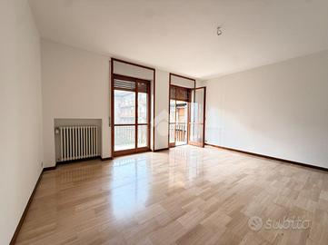 La palazzina sorge nella rinomata zona di Viale della Libertà, all'interno dello stabile 'Palazzo Giardino', dotato di servizio di portineria e ascensore. L'appartamento è posto al quarto piano e si apre su una luminosa zona giorno con accesso al primo balcone. La cucina è abitabile, separata, e dispone di una comoda dispensa, con affaccio su un secondo balcone. La zona notte è composta da due ampie camere da letto con pavimentazione in parquet. L'immobile è inoltre dotato di doppi servizi, uno finestrato e uno cieco. Completano la proprietà una cantina e un box auto di generose dimensioni. Il riscaldamento è centralizzato con termovalvole.