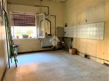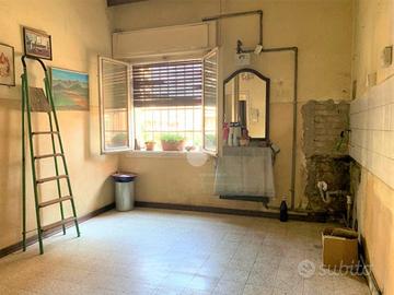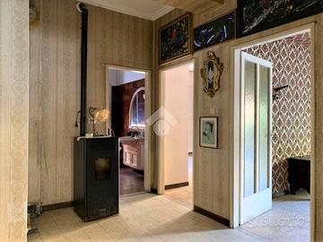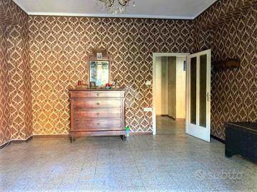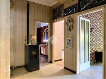 L'entrata apre sull'atrio, oggi adibito ad ingresso, sul quale affaccia la zona giorno composta dalla cucina abitabile e dal grande e luminoso soggiorno completo di camino e portafinestra che da l'accesso al lungo balcone dell'abitazione.