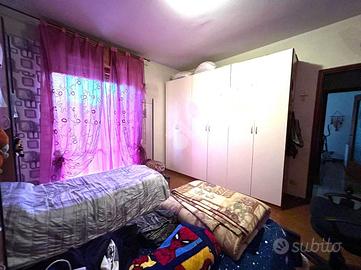 L'immobile è così composto: ingresso, sala dotato di portafinestra che conduce sul primo balcone, la cucina abitabile anch'essa dotata di portafinestra che porta sempre sul primo balcone, successivamente troviamo il corridoio che porta alle due camere da letto in una delle quali troviamo una portafinestra che conduce al secondo balcone e il bagno finestrato.