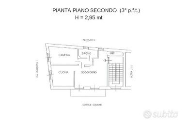 Pecetto Torinese, sulla via principale del centro paese, appartamento al secondo ed ultimo piano di un piccolo contesto residenziale privo di spese comuni.