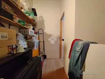 Il disimpegno, nel quale è stato ricavato uno spazio ad uso ripostiglio, conduce a: