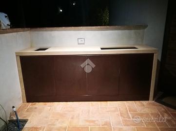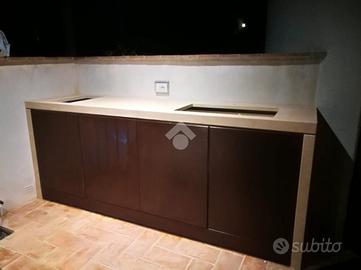 Non manca la possibilità di godere degli spazi esterni, con un giardino privato che circonda la casa, perfetto per pranzi all'aperto o per rilassarsi al sole. La cucina esterna e la veranda offrono un'ulteriore zona per godere della bellezza dei giorni di sole. Inoltre, due cisterne per l'accumulo dell'acqua sono installate per facilitare l'irrigazione del giardino, un vantaggio ecologico e pratico.