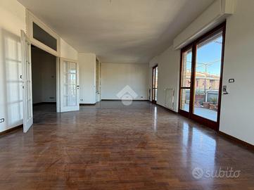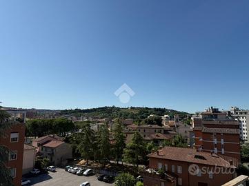 MADONNA ALTA - ampio attico di 145mq sito al 6° piano di palazzina dotata di ascensore. L'immobile vanta una tripla esposizione che garantisce luminosità in ogni ambiente della casa e offre un' incantevole vista sia su Perugia che sulle colline circostanti. L'immobile è composto da un ampio ingresso, spazioso soggiorno, cucina abitabile, doppi servizi entrambi finestrati e dotati di box doccia, cabina armadio e due camere da letto. Il terrazzo perimetrale offre un ulteriore spazio privato. Completano la proprietà un box auto di 28mq e un fondo di 8mq. Questa proposta rappresenta un'opportunità interessante per chi cerca una residenza spaziosa in una zona ben collegata.